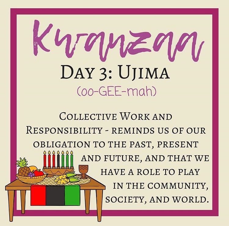 Today we celebrate Ujima, a Swahili word for “collective work and responsibility.” This speaks to the multi-faceted, intersectional nature of our shared struggle. Inequality (and white supremacy) is a hydra that targets groups with different tactics, but the myriad problems have one common root cause. So, our kin’s problems are our problems. None of us are free until all of us are free.